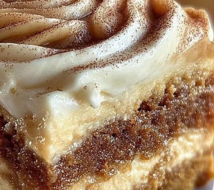Pour the pumpkin filling over the cake base and spread evenly. - Bake