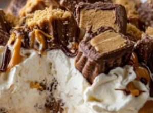 - Stir in chopped Reese’s cups or chocolate chips if using.