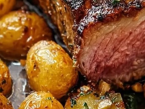 - Rest beef for 10 minutes, then slice and serve with the roasted potatoes.