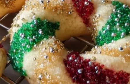 - Prepare bowls of red, green, gold sanding sugar, and granulated sugar.