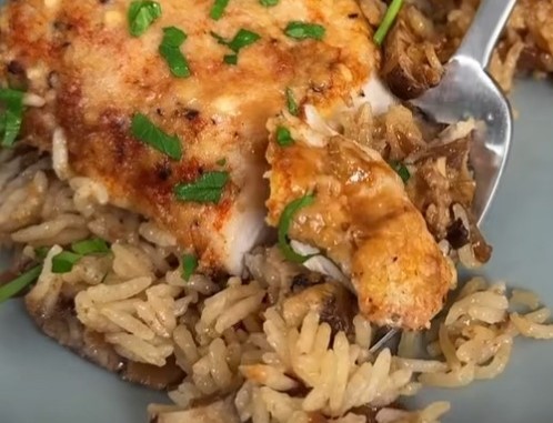 - Bake for 45 minutes. Remove foil and bake an additional 20 minutes, until the top is golden, rice has absorbed the liquid, and chicken is cooked through.