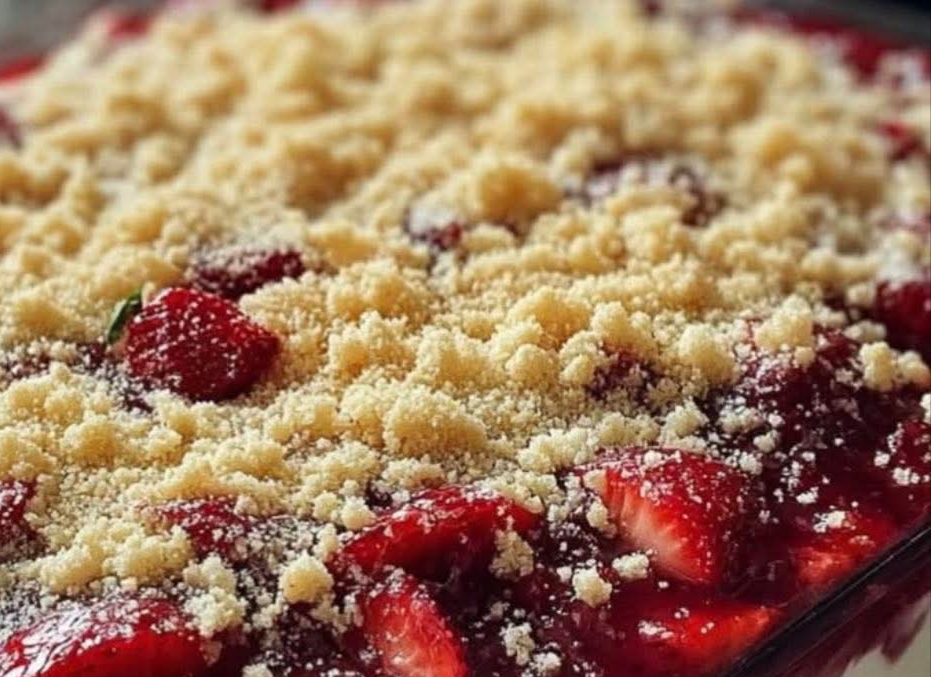 4. Spoon or drizzle the cream cheese mixture evenly over the strawberry layer.