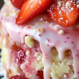 2. Prepare the cake mix according to package directions. Gently fold in the chopped strawberries, then pour the batter into the prepared baking dish.