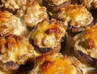 6. Bake for about 30 minutes, or until the mushrooms are tender and the cheese is melted and lightly golden.