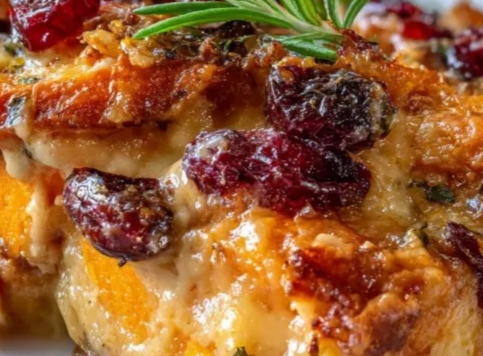 - Repeat layers with remaining sweet potatoes, cranberries, and cream mixture.