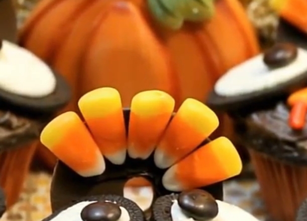 - Use a mini peanut butter cup for the turkey’s face and add candy eyes, an orange icing beak, and a small red wattle.