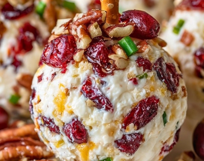 Just before serving, insert a pretzel stick or toothpick into each cheese ball. Serve chilled or slightly softened.
