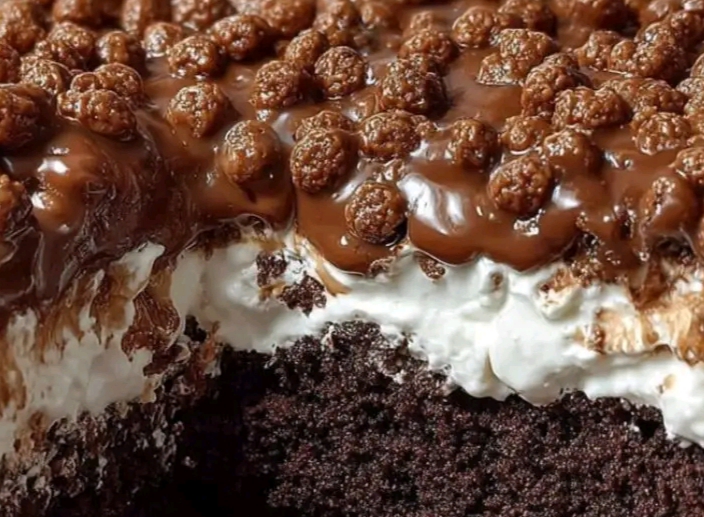 Stir the crispy rice cereal and crushed biscuits into the melted chocolate until fully coated. - Shape the cake