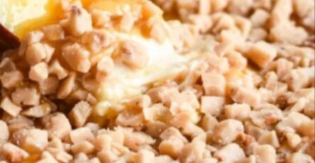 Melt using a microwave in 30-second intervals or over a double boiler, stirring until smooth. - Add the crunch